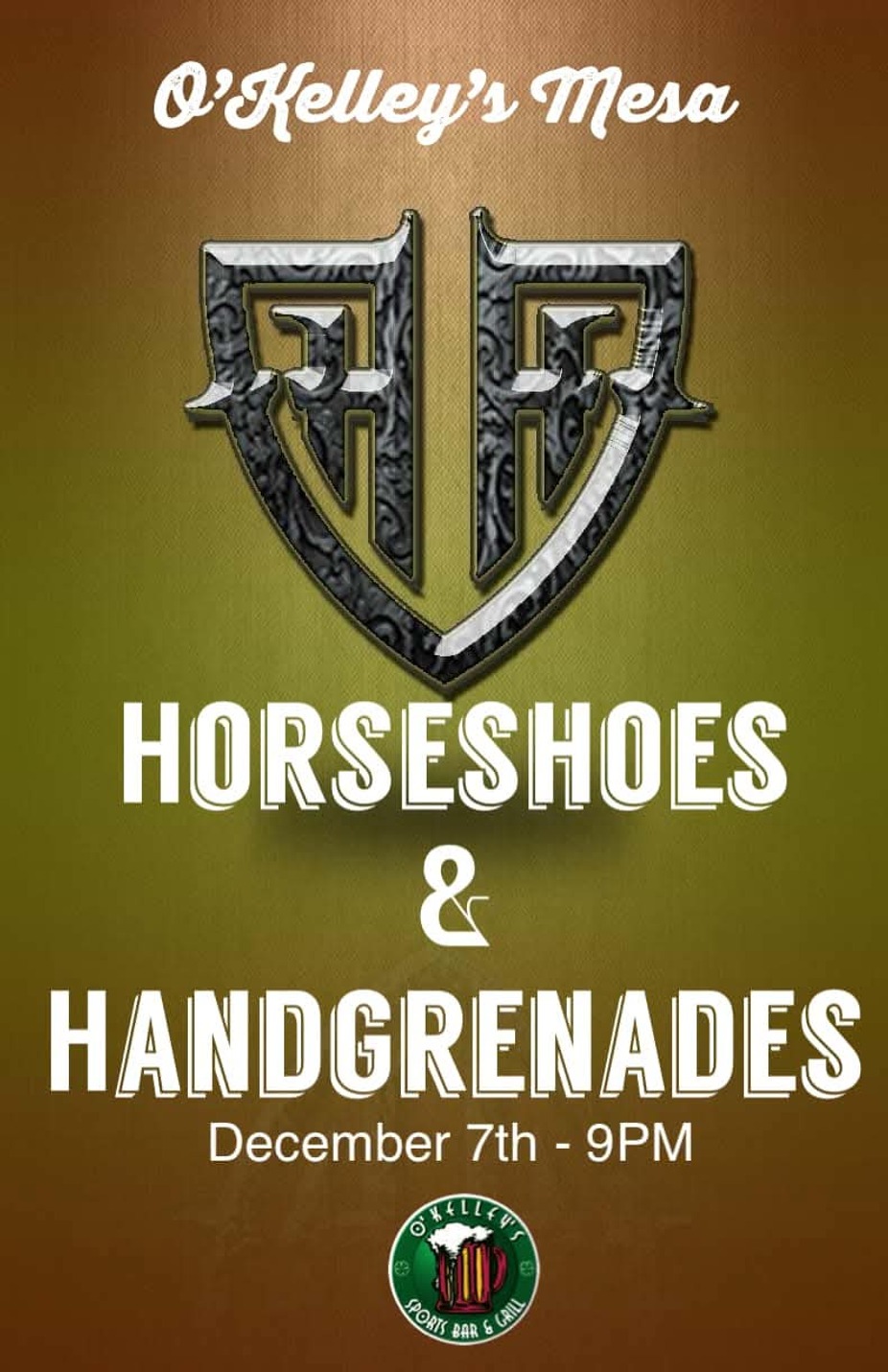 🔥 Live Music at O’Kelley’s! 🎸 Horseshoes & Handgrenades 📅 Friday, December 19th ⏰ Show starts at 9:00 p.m. Get ready for a high-energy night as Horseshoes & Handgrenades takes over the stage! Expect, powerful vocals, and great dancing. Grab your crew and come enjoy an unforgettable Friday night at O’Kelley’s!