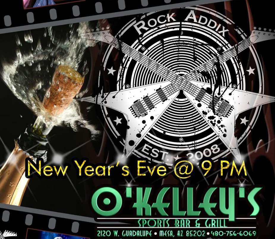 🎉 New Year’s Eve at O’Kelley’s! 🎸 Rockin’ in the New Year with ROCK ADDIX!!! 📅 Tuesday, December 31st ⏰ Band starts at 9:00 p.m. Ring in 2026 with a rockin’ good time! Join us for a night of live music, dancing, and celebration as Rock Addix take the stage to power us into the new year. 🥂 Champagne Toast at Midnight 🎉 Party Favors Included Bring your friends, raise a glass, and welcome the New Year O’Kelley’s style!